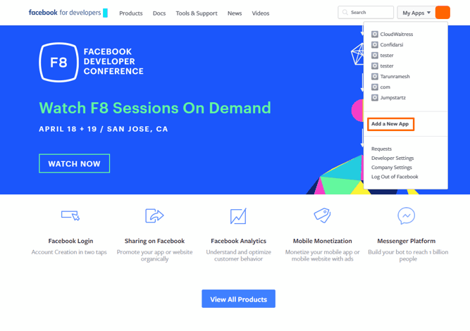 Visit https://developers.facebook.com. If you are not already signed into Facebook, you can sign in with your regular Facebook account.
