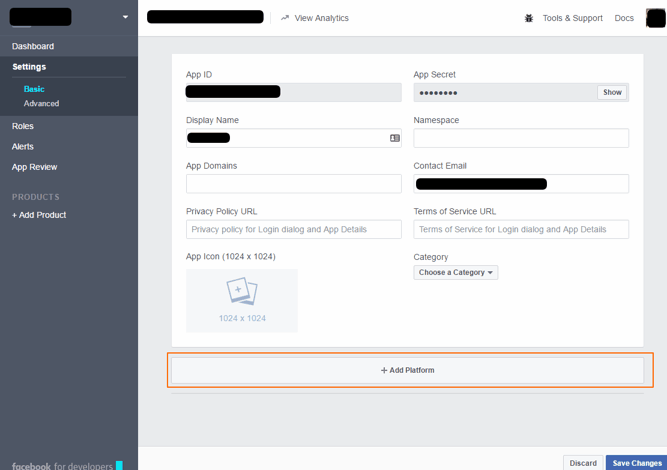 After creating the app, you will be taken to the app dashboard. On the left menu, go to "Settings > Basic"